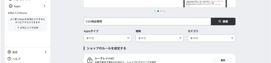 検索窓に「CSV商品管理」と入力し、