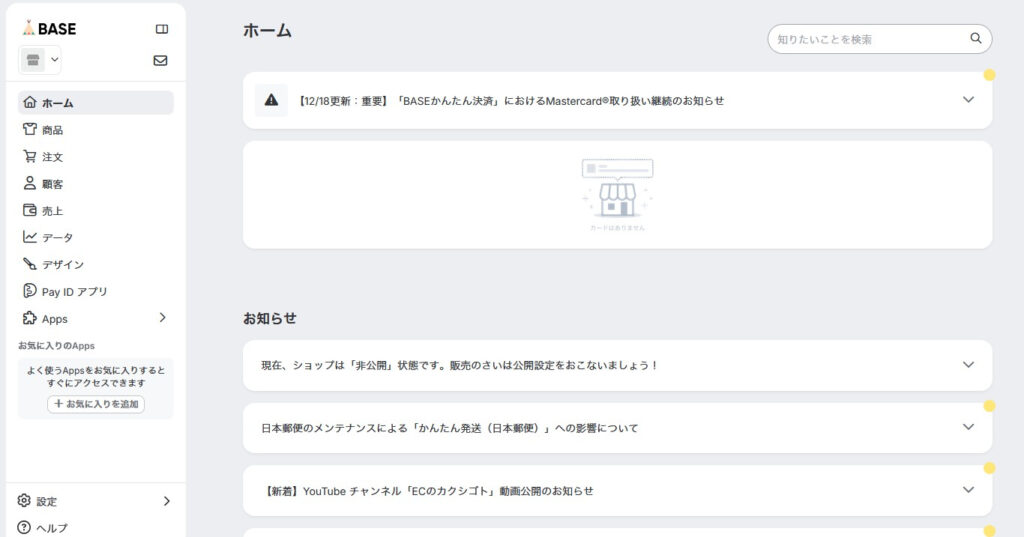 まず、BASEの管理画面にログインしてください。